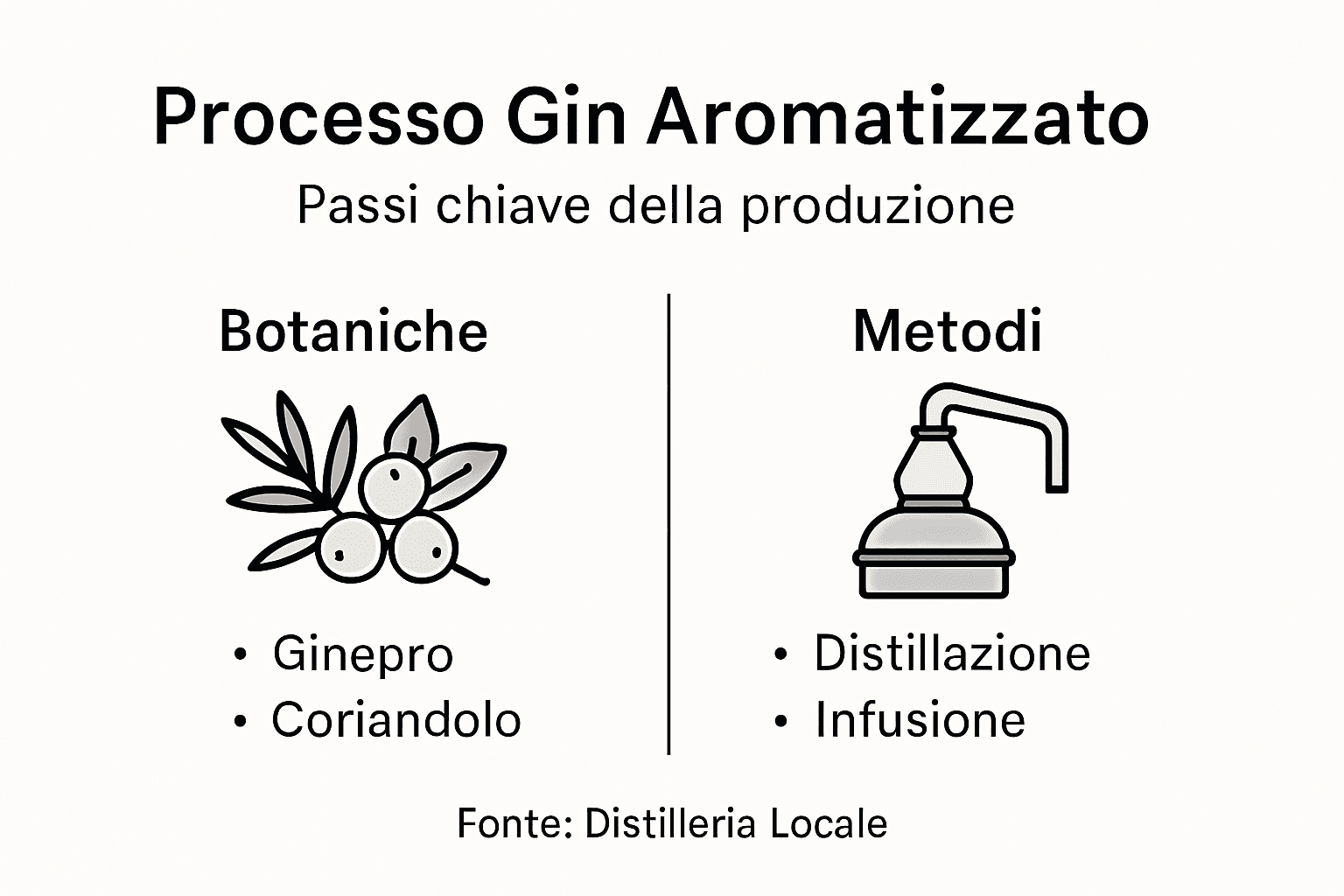 | Ingredienti Botanici | Il ginepro è l'ingrediente principale del gin, ma molte altre botaniche come coriandolo e liquirizia contribuiscono alla complessità del sapore. |