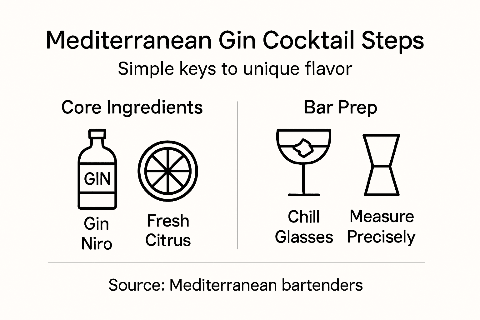 | 1. Choose Quality Gin Niro | Gin Niro's artisanal quality enhances cocktails, offering complexity that cheaper alternatives lack. It's crucial for an authentic Mediterranean experience. |